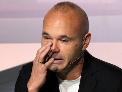 Andrés Iniesta (Fuentealbilla, Albacete; 40 años) vive como jugaba. Habla con la misma pausa y dulzura con la que amagaba el balón. Siempre tuvo la determinación de mirar hacia delante, de acabar la faena, de rematar lo emprendido. A los 12, cuando dejó su casa por voluntad propia para hacerse futbolista, y a los 24, cuando le sacudió una oscuridad que no esperaba. Hoy habla de esos miedos y dudas que asomaron al tiempo que los culés gritaban el golazo de Stamford Bridge y todos los españoles al unísono celebraban el otro gol de su vida, el que marcó con la camiseta de España en Sudáfrica. El que lo hizo inmortal. Y tan humano al mismo tiempo. Una depresión le había atropellado en 2009, el año en que murió su amigo Dani Jarque. Y de ella habla en un libro, La mente también juega (Ed.Espasa, 2025), que le ha traído hoy de vuelta a Barcelona por Sant Jordi. “Siempre me he sentido cómodo hablando de ello. Nunca he tenido pudor en hablar de cosas que no han sido de color de rosa en mi vida. Forman parte de mí”, se confiesa.