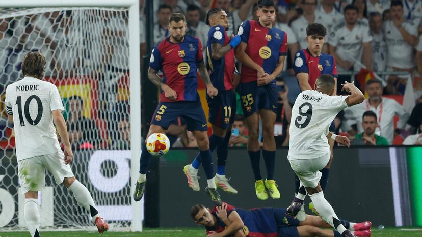 No fue suficiente pero en Sevilla llegó el instante Mbappé. En un clásico. En un clásico que era una final de Copa. Ahí sucedió. En un momento delicadísimo, acertó con una falta directa que pegó en el palo y entró. Era la segunda en menos de un mes, después del que le marcó al Leganés tras un toquecito de un compañero: el fruto inmediato de la idea de Luis Llopis, preparador de porteros, de incorporarlo al grupo de lanzadores. Ahora repitió en una cita comprometida, cuando quizá no se le esperaba.