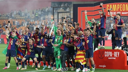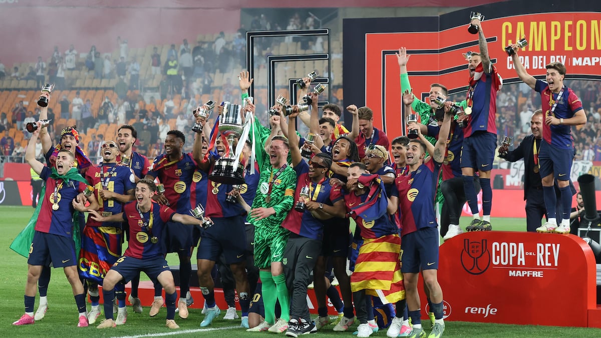 Ya campeón de la Supercopa, el Barça también levantó la Copa ante la euforia de su hinchada desplegada en La Cartuja y la pesadumbre del Madrid. Los títulos tienen hasta ahora el mismo ganador y el mismo perdedor después de que un titán de nombre Koundé cerrara la última remontada azulgrana en la prórroga de una final hermosa por competida, por las diferentes alternativas y las muchas variantes del juego, por el despliegue de dos colosos irreductibles que acabaron exhaustos, el mejor colofón a un torneo tan popular y épico como la Copa. Nadie se rindió en un clásico que se disputó como si fuera el definitivo para resolver el duelo Barça-Madrid hasta que llegó el robo y el zapatazo de Koundé, símbolo de la voracidad de los jóvenes muchachos de Flick.