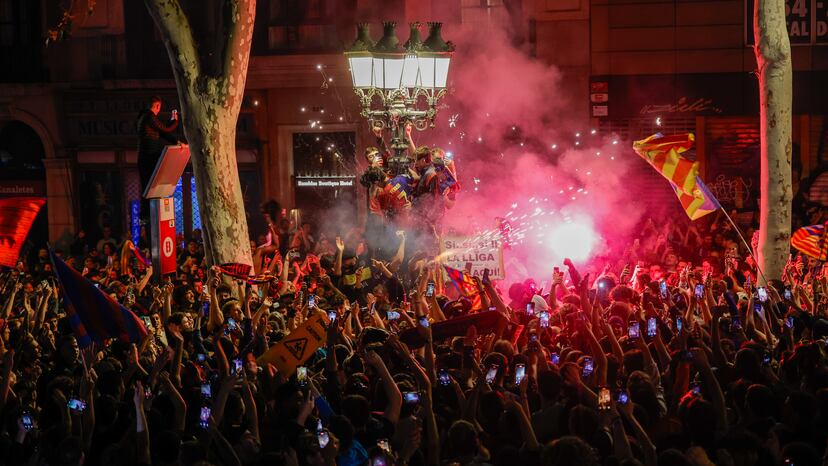 El equipo de Hansi Flick ha reconectado y tejido una conexión emocional con la afición. El año pasado, la media de espectadores en el Estadi Olímpic Lluís Companys era de 39.84 espectadores. Este año, en el segundo del exilio de Les Corts a Montjuïc ha subido a 45.752. Los culés ya celebraron la Copa del Rey en Canaletas hace unas semanas, e incluso el Clásico del pasado domingo. Y ahora LaLiga, la resurrección deportiva del equipo en una celebración de la juventud desde la memoria, desde la gloria y el sufrimiento del pasado, y desde la ilusión del presente y futuro. “Estoy hay que vivirlo”, comentaba un aficionado. Todos, al mismo latido azulgrana.