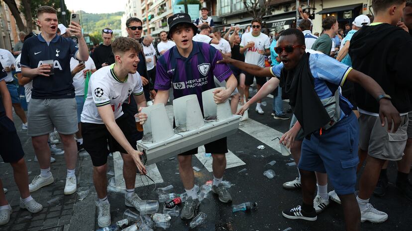 El desembarco ya se ha producido y seguirá hasta media tarde, cuando aterricen en el aeropuerto de Loiu los últimos aviones procedentes de Londres y Manchester. Miles de seguidores ingleses ya están en Bilbao y peregrinan hacia sus cuarteles generales, el del Manchester United en el Parque Etxebarria, y el del Tottenham en Amezola. Son ruidosos, beben cerveza, pero según los hosteleros, también muchos cubalibres, y de momento han causado pocos incidentes, salvo arrancar un semáforo en la calle Licenciado Poza y pasearse con él, como trofeo de los aficionados de los Spurs. Sucedió el martes por la tarde, es decir, a plena luz del día, y hasta el alcalde, Juan María Aburto, lo condenó, aunque rezando por que ese sea la mayor transgresión de los más de 60.000 aficionados que han llegado y llegarán a la capital.