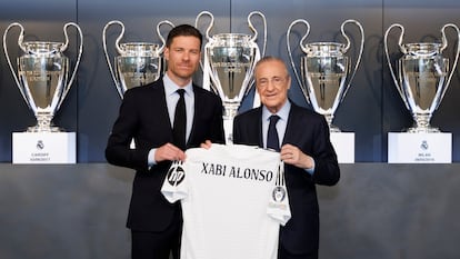 Al poco tiempo de llegar en 2022 al Bayer Leverkusen, su primera experiencia en un banquillo de élite, Xabi Alonso veía el Madrid como un destino más a largo plazo, consciente de que la trituradora del Bernabéu era tan grande como la fascinación que produce. En ese momento, consideraba que lo mejor era no tener prisa e ir quemando etapas; sin embargo, su ascenso ha sido tan rápido que el futuro ya está aquí para él. Vestido con camisa blanca, corbata negra y traje entallado, el vasco se presentó este lunes en Valdebebas investido como la nueva esperanza blanca. “Solo va a haber una vez en la vida en la que pueda entrenar al Real Madrid y hoy es el primer día”, aseguró el tolosarra, de 43 años, que en tres temporadas ha pasado de Segunda con la Real Sociedad B al Bernabéu.