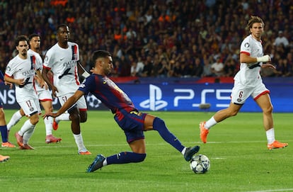 No ha sido la mejor puesta en escena del vigente campeón de Europa. Y aún con todo, le está dando para empatar por el momento en Montjuic. La ausencia de Dembélé o de Khvicha Kvaratskhelia le ha restado verticalidad, con un Mayulu y un Mbaye muy lejos todavía del nivel que exige la escena europea. Tampoco ha tenido su mejor noche con balón en cuanto al juego, con un Vitinha sin líneas claras de pase para progresar y con pérdidas en zonas peligrosas a las que no suele acostumbrar.