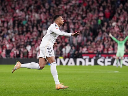 Ante un Athletic agrietado y destensado, la mejor solución de los blancos para amenazar fueron los balones largos. En un gran cambio de orientación de Trent se cocinó el 0-1 de Mbappé y otro envío de costa a costa colocó a Vinicius delante de Unai Simón, un mano a mano que el brasileño no aprovechó. Los pases largos allanaron el camino de un Madrid donde todo sigue comenzando por un portero (Courtois) y un delantero (Mbappé) portentosos.