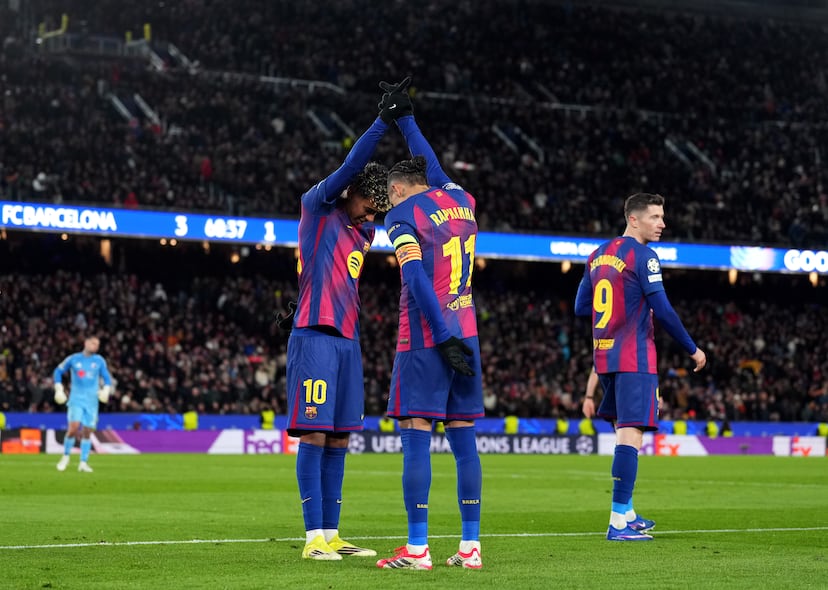 Una jugada había acabado por fin en gol y no en córner cuando en el campo ya estaba Marc Bernal, sustituto de Eric García —un mareo provocado por un pelotazo aconsejó que se quedara en el vestuario— y en la cancha mandara Lamine. El extremo cargó con el equipo y con la afición, al igual que ya pasó contra el Oviedo, y en el Camp Nou cayeron dos goles muy rápidos, uno de rebote a tiro del propio Lamine y el segundo después de un penalti que pareció que no era y que transformó el capitán Raphinha.