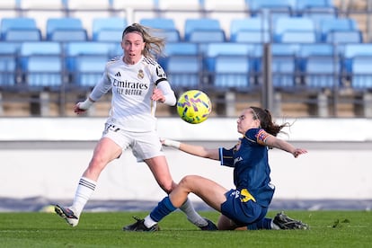 A principios de temporada, nadie se imaginaba que Eva Navarro se convertiría en una pieza fundamental en el Real Madrid en una posición tan desconocida para ella como la de lateral derecho. La extremo había sufrido tanto para adaptarse durante su primera campaña en el club blanco que tan solo formó como titular en 12 partidos, perdió su lugar en la selección española y su fútbol chisposo y técnico se apagó. La murciana, que acaba de cumplir 25 años hace solo unas semanas, brilló por primera vez como defensa el 8 de octubre ante la Roma en la liguilla de la Champions tras las lesiones de Sheila García y Antônia Silva. Desde entonces se ha convertido en su nuevo puesto en una de las jugadoras más diferenciales del equipo dirigido por Pau Quesada, que este miércoles se mide en el Di Stéfano con el Paris FC (18.45; Disney+) en la vuelta del playoff que da acceso a los cuartos de final de la Liga de Campeones, en donde espera el Barcelona. El encuentro, al que el Madrid llega tras el 2-3 cosechado la semana pasada en la capital francesa, es clave para un conjunto que trata de colarse por tercera vez en su historia entre los ocho mejores de Europa y que ya está eliminado de la Copa y a 10 puntos de las azulgranas en Liga.