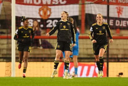 Pero el United también encontró ocasiones. Y como en la ida, fue muy eficaz. El Atlético no renunció a salir desde atrás, motivo de angustia por momentos, y sufrió por la izquierda. Ante su habitual defensa de cinco —tres centrales, dos carrileras—, las red devils localizaron un hueco prometedor entre los desajustes de Alexia, Xènia y Lauren Leal por el que entraron Malard y Schüller. Por ahí también irrumpió el gol: Naalsund apareció sola y asistió a Zigiotti, liberada dentro del área.