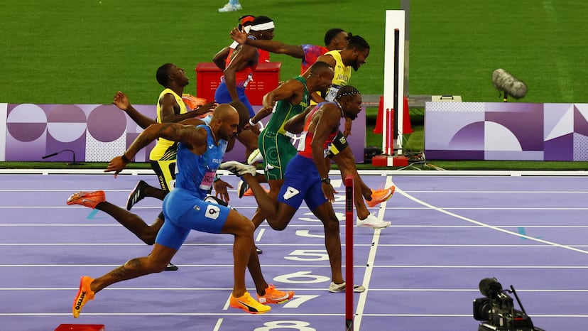 Un minuto después, a Noah Lyles le dan el máximo honor a que se puede aspirar en el Stade de France, convertido en discoteca de luces y alaridos, agarrar la cadena y tañer la campana que solo los campeones pueden hacer sonar. Lo hace como un niño enloquecido, incontrolado. Acaba de ganar la final de los 100m, el objetivo de su vida. Lo ha hecho con una carrera como son todas las suyas, mala salida y progresión. Gana como nadie ha ganado antes un oro olímpico de los 100m, con una marca magnífica, 9,79s, la mejor de su vida, por un margen minimísimo, cinco milésimas de segundo, una diferencia con el segundo, el frustrado jamaicano Kishane Thompson, que solo la fotofinish pudo encontrar. Exactamente 9,784s por 9,789s. Un suspiro, la exhalación final. El poder de la velocidad olímpica regresa a Estados Unidos 20 años después de que en Atenas Justin Gatlin se impusiera después de una sesión de sirtaki y antes de dar positivo por dopaje.