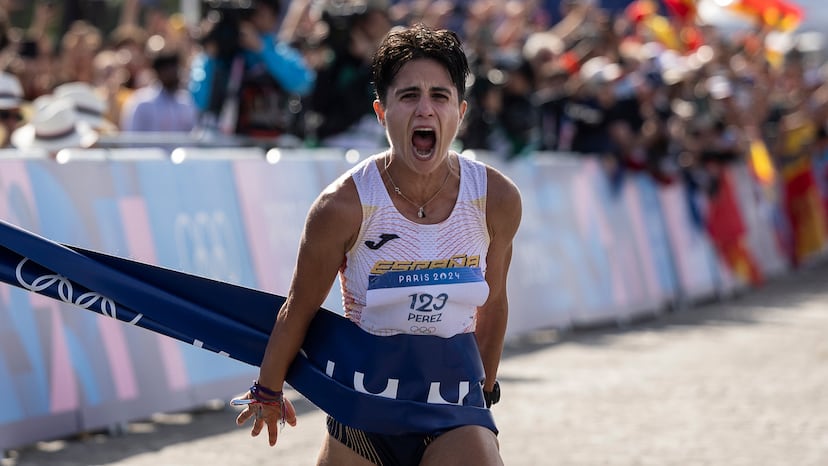 No hay mejor lugar para la gran exhibición de la marcha de oro, de los chicos de oro, Álvaro Martín, 30 años, de Llerena, Badajoz, y María Pérez, de 28, los primeros atletas españoles que alcanzan el máximo, la triple corona, campeones de Europa, campeones del mundo, campeones olímpicos. Y hace cuatro días, junto al mismo Sena, bronce y plata, respectivamente, en los 20 kilómetros. Su foto, una en brazos de otro, banderas de España por todas partes, es ya el gran clásico del deporte español. La imagen nació en la plaza de los Héroes de Budapest el verano pasado, dos veces campeones del mundo (20 y 35 kilómetros); se repite en París, donde más luce. Es el primer oro del atletismo español desde la victoria de Ruth Beitia en el salto de altura en Río 2016.