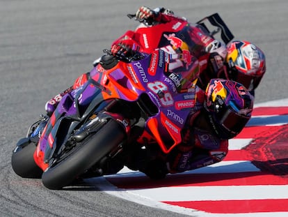 Eran unos segundos de intimidad. Hasta que las cámaras de MotoGP nos permitieron asomarnos por un agujerito. Jorge Martín, líder del Mundial —líder entonces, a mediodía de este domingo campeón del mundo—, hacía sus ejercicios de visualización antes de la carrera. Concentración máxima, sentado en el box. Los ojos cerrados, el cuerpo recogido, las manos en puño asiendo fuerte el manillar. Y el chico fluye. Qué belleza ese instante de calma. Único, quizá, en un fin de semana vertiginoso. Antes de que llegaran los gritos para soltar adrenalina. Las lágrimas para descargar tanta tensión.
