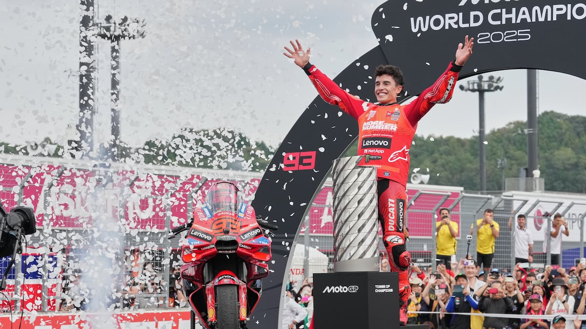 Marc se desgañitó al cruzar la línea de meta, liberó todos sus demonios a base de gritos y lágrimas. La emoción a flor de piel. La carrera fue plácida, pero inevitablemente tensa ante el peso de la historia. Salvó sin sobresaltos la salida, y luego remató la faena remontando de la cuarta a la segunda plaza sin poder alcanzar a un imponente Bagnaia, también liberado de sus demonios personales con un pleno en Motegi. “Más que un número”, recordaba el lema de la celebración. Y tan lejos quedaba su anterior alirón que hasta le costó poner su nombre en la torre de campeones. Fue una fiesta redonda en Japón, con un podio donde también pudo celebrar Joan Mir con la Honda, la anterior familia del 93 en los circuitos.