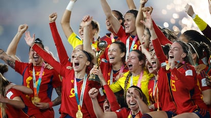 Y llegó Inglaterra, fútbol directo y de segundas jugadas, con Hemp con el gancho y la caña preparada. Pero la Roja desnaturalizó al conjunto dirigido por la magnífica Weigman, bloque junto y equipo de pe a pa, también con las manoplas de Cata. España, que lo había ganado todo en el último lustro en las categorías inferiores —siete Eurocopas y tres Mundiales—, necesitaba dar el salto. Ninguno más grande que este, estrella en el escudo, gloria perenne.