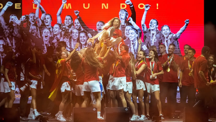 La tarde-noche de este lunes había muchas mujeres y muchas generaciones juntas para recibir a las campeonas del mundo que volaban a Madrid desde Sídney tras su victoria en la final del Mundial. Abuelas, madres y nietas. Y novios, y familias. Y niños muy pequeños que pedían la bandera en sus mofletes en cuanto veían que alguna mujer sacaba de su bolso el pintacaras. Qué fiesta. Qué karaoke.