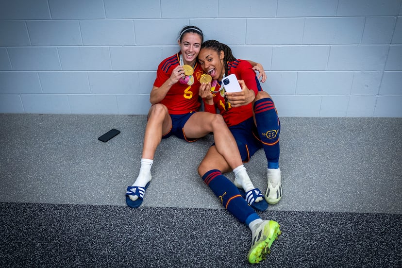 Solucionado el agujero, el equipo también se definía por sus laterales. Si bien Ona era intocable —puede jugar por la derecha y por la izquierda, siempre con proyección de pisar ofensiva—, Vilda escogía a Oihane, toda una lapa, cuando la pareja de baile se desentendía de la fase defensiva para lanzar las contras. Eso quitó minutos a Olga Carmona, extremo reconvertida a carrilera, futbolista de llegada y pegada, lúcida como ninguna cuando el partido lo exigía. Sus goles en la semifinal y en la final la catapultan a la eternidad, ahora segura de que no se equivocó al mantener esas espinilleras desgastadas de la suerte en las que salen su familia, su madre, y seguro que también estará ahora su papá, fallecido horas antes de la final. Estrella en el cielo y en el pecho.