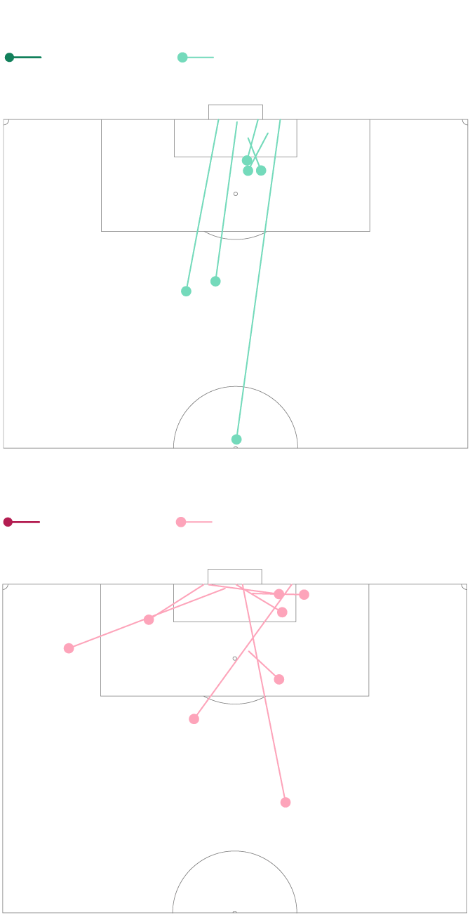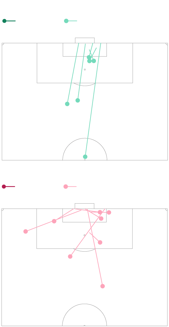 Momentum del partido. Qué equipo está creando más situaciones de peligro en cada minuto. Se calcula a partir de las posesiones de balón recientes de cada equipo y su probabilidad de acabar en gol. Controlar el balón tiene un valor diferente según la posición: no supone el mismo peligro retener la bola entre tus centrales que llegar al área pequeña del rival.