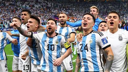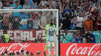 Leo Messi, que metió uno de los dos goles de Argentina y materializó uno de los penaltis de la tanda, ha explotado de alegría al ver cómo Argentina está ya entre los cuatro mejores equipos de este torneo.