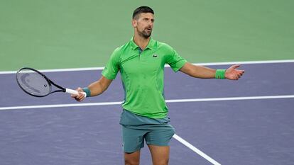 En Indian Wells, remanso de paz según los tenistas que lo disfrutan, una convulsión en toda regla: cae Novak Djokovic, el mismísimo Djokovic, cuando el torneo apenas ha entrado en calor y todo el mundo confiaba en el que el número uno, de vuelta en California tras cinco años de ausencia, pudiera sentir un estímulo extra por eso de ganar otra vez —no lo hace desde 2016— y desmarcarse así de Roger Federer, también cinco laureles. Pero no, no será está vez. Segunda aparición del serbio esta semana y todo un dejà vu, porque por ahí deambula errático el de Belgrado durante dos horas y 22 minutos, lo que tarda en consolidarse el topetazo frente a Luca Nardi: 6-4, 3-6 y 6-3. Otra vez, como ya sucediera en las semifinales de Australia frente a Jannik Sinner, en enero, Nole no es Nole. Ni ataca ni defiende ni termina de revolverse. No hay rastro del magnífico restador ni del jerarca y, al final, el rival se le termina subiendo a las barbas y acabando con él.