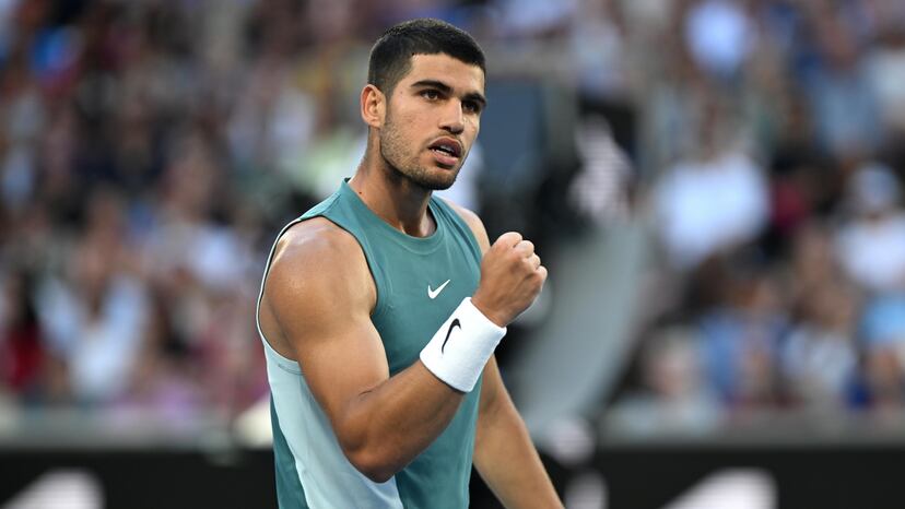 Una hora después de haber resuelto el debut en Melbourne contra Alexander Shevchenko (6-1, 7-5 y 6-1, en 1h 54m), Carlos Alcaraz departe con cuatro periodistas sentado sobre un sofá aterciopelado y con una de las botellas blancas que distribuye la organización a los tenistas entre las piernas. En la superficie del tapón lucen rotuladas sus iniciales, CA, y al depositarla sobre la moqueta se percibe el sonido metálico. Resulta que hace escasos días, se hizo viral un vídeo en el que el murciano colocaba de manera meticulosa los bidones durante la exhibición previa al torneo frente a Alex de Miñaur y, de inmediato, por las redes comenzaron a circular a toda pastilla los paralelismos con Rafael Nadal, que acostumbraba a ponerle mucho énfasis a ese ordenamiento con el objetivo de concentrarse mejor.