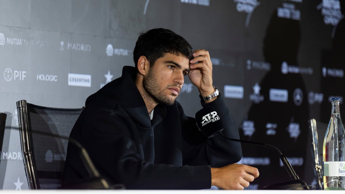 Lo anuncia Carlos Alcaraz con la voz acatarrada. Asume y acepta, pero igualmente duele. Adiós, Madrid: “En la final de Barcelona entró el fisio para tratarme y también noté algo en el isquio izquierdo. He hecho todo lo posible, pero no ha mejorado mucho la cosa y hay que escuchar al cuerpo. Jugar aquí es muy emocionante para mí, pero al final las cosas no han salido como quería. Hemos tomado la decisión de no asumir riesgos de cara al futuro, porque podía estar jodido más de la cuenta. Había que tomar decisiones difíciles. Ahora trataré de descansar y de recuperar para estar lo antes posible en las pistas”.
