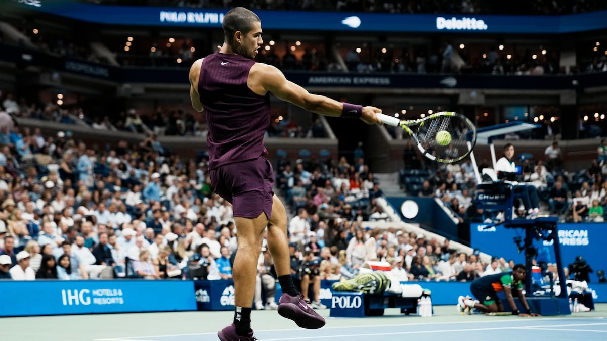 Así que cuando las piernas de Alcaraz se activan y el murciano se suspende en el golpeo, descarga y la bola rasea como un proyectil hacia la línea de fondo y los pies del italiano, imposible cazarla para él, las bocas impresionadas del público de la Arthur Ashe se abren. Por algunas de ellas (no pocas privilegiadas) entra el caviar, acompañado en la cajita roja por una ración grasienta de noodles de pollo. Caviar y pollo, sí, esto es Nueva York; la ley de la tarjeta de crédito (100 dólares el bocado) y movimiento sin cesar en todo el primer graderío porque el juego, en ocasiones, parece ser lo secundario. La actividad le obliga a Alcaraz a hacer la pausa: esto es Nueva York, de acuerdo, pero esto es tenis.