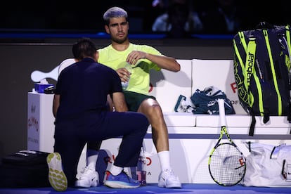 Se lleva el gato al agua Jannik Sinner, vencedor en la instantánea final de una temporada tan fascinante como repetitiva: merece la pena el atracón. Todo sea por ver un tenis que escapa a la tediosa dinámica actual. Todos los caminos conducen inevitablemente a ellos dos, y esta vez lo festeja el italiano, autor final de una obra magna, perfecta e infinita, como las paredes rectilíneas de la Piazza San Carlo. No encuentra Carlos Alcaraz la llave (7-6(4) y 7-5, tras 2h 15m) y se resuelve el sexto desenlace del año entre los dos como le gusta al anfitrión, en forma de sacudida. Esta es su casa, aquí manda él. Con el doblete de cetros maestros, se une el campeón a Borg, Becker y Zverev, y se quita una losa de encima. Reinventarse o morir, y la nueva fórmula le funciona.
