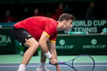 Sentado sobre un butacón de cuero del cuartel general del equipo español, Marcel Granollers (Barcelona, 39 años) viaja de un extremo a otro: de ese que ya queda lejos al presente feliz que sigue disfrutando de la mano de Horacio Zeballos, Cebolla, su compañero de correrías. Este año, ambos triunfaron en Roland Garros y el US Open, además de haber alcanzado la cima del circuito. El catalán, con tres Copas Davis en el expediente, lo saborea y lo reivindica: do-bles. “¿Por qué no?”. Tras no haber podido participar en toda la fase clasificatoria, su presencia resulta trascendental para que España, citada este jueves en los cuartos con la República Checa (10.00, Movistar+), apure sus opciones pese a la pérdida inesperada de Carlos Alcaraz.