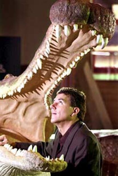 Un paleontólogo contempla en el museo de Sydney la mandíbula de un cocodrilo gigante (11 metros) de 110 millones de años.