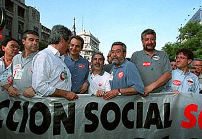 José Luis Rodríguez Zapatero, Gaspar Llamazares, Cándido Ménez y José María Fidalgo encabezan la manifestación celebrada en Madrid. PLANO MEDIO - ESCENA