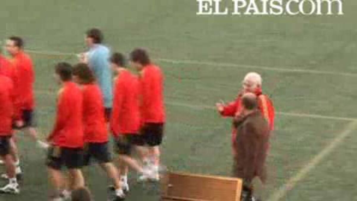 El seleccionador español, Luis Aragonés, cortó el acto de presentación de la nueva camiseta que portará el equipo en los últimos partidos de clasificación y en la próxima Eurocopa -el sábado puede confirmar matemáticamente su pase en la visita de Suecia al Bernabéu- con un gesto al presentador para que sus jugadores se dirigiesen a realizar el entrenamiento vespertino.