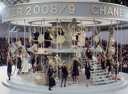 Pasadas 12 horas, también en el Grand Palais, Karl Lagerfeld presentó su colección para Chanel. Un tiovivo con la iconografía completa de la maison (el sombrero de mademoiselle, las perlas y las camelias, el bolso guateado...) en lugar de los esperados caballitos marcó un claro contraste con la majestuosa instalación de carpas blancas de la noche anterior. Y así como Pilati se concentró en dictar tendencias, Lagerfeld hizo lo que no había hecho en mucho tiempo: una propuesta atemporal e inconfundiblemente Chanel. Los trajes sastre, a la rodilla y en la arquetípica lana bouclée de la marca; los cárdigan con mangas entalladas y cinturas ceñidas; la deportiva mezcla de blusas de gasa con faldas de punto: clásicos tan legítimos hoy como cuando los concibió Coco Chanel hace 80 años. Un interesante añadido fueron los vestidos inspirados en los zapatos bitono de la casa, en los que la espalda negra y el frente en color carne con medias a juego generaron una exitosa ilusión óptica.