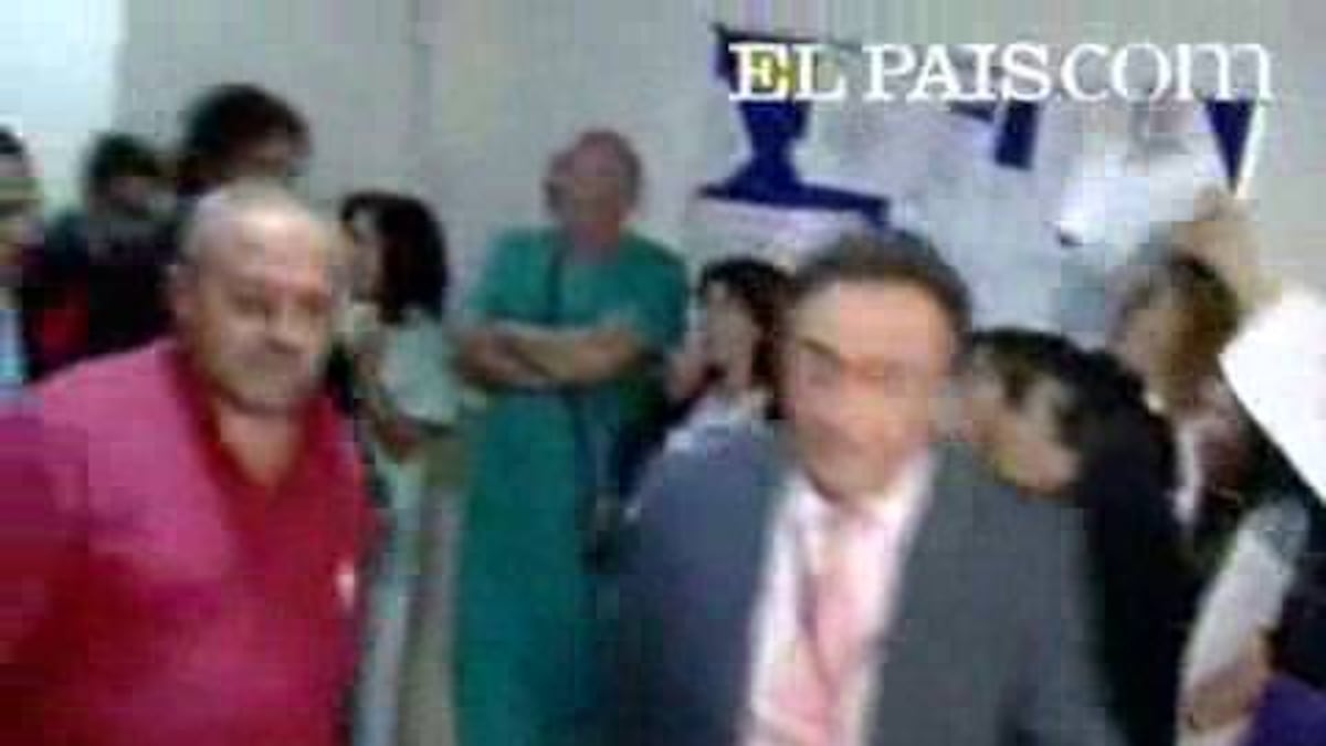 Varias decenas de personas recibieron ayer al consejero con pancartas, pitos, gritos e insultos en el hospital. Y mantuvieron la protesta durante la hora que permaneció en el centro. Los manifestantes, convocados por UGT, CC OO y CSIT-UP, que reivindicaban la sanidad pública, aporrearon desde fuera las paredes del salón de actos, donde se celebraba la presentación y, al concluir la visita, acompañaron al consejero por todo el hospital y golpearon el automóvil en el que se marchó.