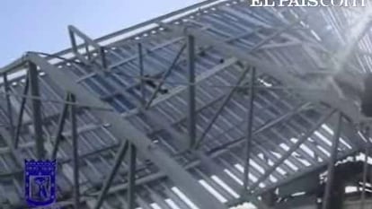 En enero entró en vigor la nueva Ordenanza de Publicidad Exterior. Según el documento, la superficie publicitaria de los paneles en las azoteas de edificios como el de avenida de América no puede exceder de los 70 metros cuadrados. Mientras se adaptan a la nueva normativa, las vallas ya instaladas deben cumplir el límite de 90 metros cuadrados que imponía la anterior ordenanza. Pues bien, los bomberos aseguraron ayer que el cartel de Telefónica doblado por el viento mide más de 200 metros cuadrados de estructura, casi el triple de lo permitido. Este periódico reclamó su versión a una portavoz de Telefónica sin obtenerla.