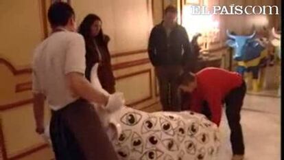 Más de 100 personas asistieron ayer como pujadores a la subasta. Otras tantas fueron de mirones. En esta última categoría estaba Begoña, con sus taconazos y sus pantalones estrechos, venga a cruzar y descruzar las piernas. A sus 24 años estaba viendo por primera vez cómo la gente pujaba por una obra de arte hecha por ella. "1.700 en la sala, gracias", arrancó la subastadora, con tono suficiente. "1.900 a mi derecha; 2000...", seguía. La cosa se empezó a animar: 3.000, 3.500. "Voy a vender esta vaca por 6.000 euros", dijo. Y acabó en 7.500, el ejemplar más caro de la noche. Midnight runner, la vaca mitad mujer, con dos piernazas saliéndole de la espalda, alucinaba. A Begoña Fernández-Castaño Hernando le costó dos meses, mucho trabajo y 1.000 euros hacerla.