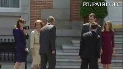 Pero el momento más esperado en esta competición de Carla Bruni por ganarse el trono de las damas llegó ante las escaleras del palacio de la Zarzuela, cuando los Sarkozy conocieron a los príncipes de Asturias. Doña Letizia y Carla hicieron estallar los flashes, y ellas, conocedoras de la situación, se dejaron fotografiar ante la mirada picarona de don Juan Carlos y las sonrisas de la Reina y don Felipe.