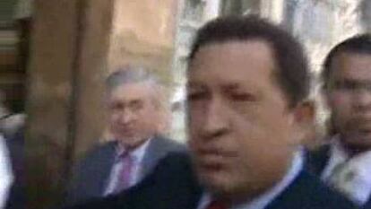 Mientras Chávez bromeaba en el interior de la librería, a la salida se iban concentrando decenas de personas, de diversas nacionalidades, que a la salida del presidente iban a gritarle "dictador" y "asesino". Chávez salió sonriendo y enviando besos a algunas de sus partidarias.