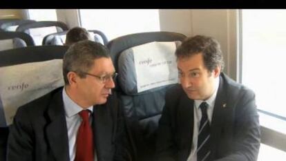 En el convoy 03090 Barcelona-Madrid del viernes pasado, dos pasajeros conversan codo con codo. Se conocen y se respetan. Les gusta el AVE porque, viviendo y trabajando cada uno en su ciudad, se sienten más cerca. Uno, el socialista Jordi Hereu, afronta la etapa más complicada como regidor de Barcelona en su primera legislatura. Suspira porque "hubiese más gallardones en el PP", mientras mira a su compañero de viaje, Alberto Ruiz-Gallardón, alcalde de Madrid, lanzado hacia su tercer mandato. EL PAÍS ha reunido a ambos en el segundo aniversario del AVE y ha pasado revista a las dos ciudades. Primero un copioso desayuno en la Boquería para romper el hielo, y después, ya sentados en un vagón, dos horas y 45 minutos de debate.