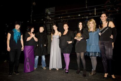 La canción gallega celebró con unas horas de adelanto, ayer en el Teatro Rosalía de Castro de A Coruña, el Día da Muller Traballadora. Al nombre de Sereas respondieron siete representativas voces femeninas del pop y el folk. En la foto, de izquierda a derecha, posan minutos antes de comenzar el concierto Silvia Penide, Uxía Senlle, Mercedes Peón, la poeta y presentadora del espectáculo Yolanda Castaño, Ugia Pedreira, Guadi Galego, Sonia Lebedynski y Rosa Cedrón. La actuación, producida por el escritor Lino Braxe y el músico Rómulo Sanjurjo, forma parte del ciclo Música con raíces, organizado por el ayuntamiento de la ciudad.