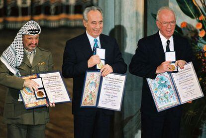 Desde entonces Peres ha pasado por cinco partidos políticos diferentes, ha sido casi todo en los Gobiernos y en las oposiciones, ha ejercido de cara amable de Israel en el exterior, donde por lo general fue siempre más apreciado que en su propio país, y ha sido diputado de forma ininterrumpida (excepto un breve periodo de tres meses) desde 1959 hasta su elección como noveno presidente de Israel en 2007. El premio Nobel de la Paz (junto con Isaac Rabin y Yasir Arafat) en 1994 por los acuerdos de Oslo, de los que fue artífice principal, y su condición de referente para la izquierda israelí durante tantos años componen una figura formidable, de una presencia fértil y continua en la escena política y diplomática de Oriente Próximo. La conversación tiene lugar en sus oficinas en Jerusalén, en un despacho cuajado de libros, días antes del último altercado a cuenta de la construcción de nuevas viviendas para israelíes en la parte árabe de la ciudad, anunciada durante la visita del vicepresidente de Estados Unidos, Joseph Biden.