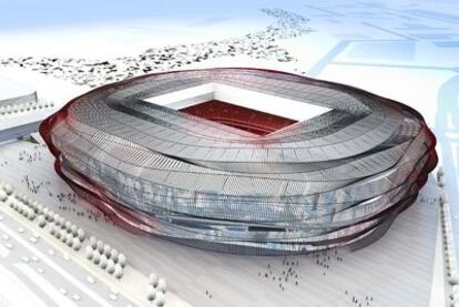 Este también está asegurado dentro del estadio. Por eso los arquitectos que buscan hacer de la arquitectura para el fútbol otro nuevo espectáculo se han concentrado en la piel de los estadios: en su fachada y, por tanto, en su relación con la ciudad. Los ciudadanos veremos cada vez menos rampas y escaleras para sorprendernos ante montañas, nidos, rocas facetadas, pantallas cambiantes y pieles vivas que alteran gamas de colores a ritmo de gol. Envueltos en mares de leds, los nuevos estadios gritan sin alzar la voz. Pueden incluso celebrar con efectos luminosos en sus fachadas lo que sucede en el interior del recinto.