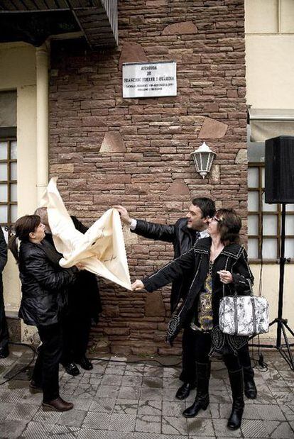 Murió el 13 de octubre de 1909, fusilado por la participación que no tuvo en la Semana Trágica. Francesc Ferrer i Guàrdia fue un pedagogo libertario. Y Barcelona reparó ayer parcialmente aquella injusticia dedicándole una avenida. Es la segunda vez que la ciudad le rinde reconocimiento. Durante la Guerra Civil, el hoy teatro Borràs fue denominado Ferrer Guàrdia, nombre que perdió al triunfar el general Franco. La avenida dedicada al fundador de la Escuela Moderna se llamaba hasta ayer Marqués de Comillas, en honor de Antonio López López, que participó en el tráfico de esclavos. En la imagen, de izquierda a derecha, la concejal del distrito de Sants-Montjuïc, Imma Moraleda, el primer teniente de alcalde, Carles Martí, y Maria Rosa Alella, directora de la Biblioteca Ferrer i Guàrdia, en el momento de descubrir una de las placas de la calle dedicada al pedagogo.