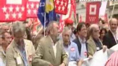 La escasa acogida de la protesta de ayer pone en entredicho la amenaza de huelga general. Los sindicatos mayoritarios han afirmado por activa y por pasiva que, si la reforma laboral que el Gobierno piensa aprobar por decreto el próximo 16 de junio sale sin consenso y lesiona los derechos de los trabajadores, recurrirán a su herramienta más dura, la huelga general. Pero ayer los convocantes apenas aludieron al paro general y el líder de UGT, Cándido Méndez, negó que la jornada de ayer fuese "un ensayo de huelga general". Su homólogo en CC OO, Ignacio Fernández Toxo, advirtió, eso sí, de que la convocarán si hay una reforma laboral lesiva. "Que no quepa duda", proclamó en la manifestación de Madrid.