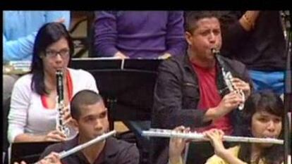 Simon Rattle se llama el señor a quien hay que seguir el ritmo. Algunos de sus compañeros son incapaces de retener el nombre. Mira con ojos de mago, mueve mucho la cabeza y parece un bailarín con manos embrujadas. Lo que no se les olvidará es la forma en la que les ha enseñado a desgranar la música durante una semana plagada de ensayos en la Universidad Nacional de Caracas este mes de julio. Lo ha hecho pacientemente, con metáforas de flautista de Hamelín: "En este pasaje tocado como si encontrarais a vuestra madre: ¡mamá, mamá!...". Con ese teatro, a los 344 niños y adolescentes de entre 8 y 15 años que han formado la Orquesta Infantil de Venezuela les resultamuchomás fácil entender lo que quiere. Así, con un grande, es como se ha bautizado la presentación de la tercera generación salida del sistema de educación musical implantado por José Antonio Abreu desde 1975. Esemilagro que hoy es la referencia por sus métodos de enseñanza y excelencia en todo el mundo.