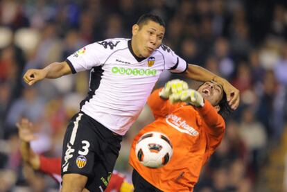 Lo aprovechó el Mallorca para poner tierra de por medio. Se impuso en la medular y salió muy rápido a la contra, con todo tipo de facilidades para encarar a Moyà. Stankevicius, por ejemplo, marcaba a distancia a Chori Castro, dándole un mínimo de cinco metros: del jugador más incisivo del Mallorca se encargaba un debutante con el Valencia que, como se vio en el Lituania-España, no es un marcador implacable. Lo disfrutó entonces Villa y lo agradeció anoche Chori Castro para marcar el 0-2. De cabeza, tras el rechace con el pie de Moyà a un disparo desde la frontal de Ratinho. Así llegaba el Mallorca al área valencianista, con el lateral derecho ajustando el gatillo. El partido se le puso muy claro al conjunto de Laudrup desde que, en el minuto tres, Webó se tropezara en su intento de remate y el árbitro entendió que había sido trabado por Ricardo Costa. El penalti, muy mal tirado por Chori Castro -despacio y por el centro-, le pasó por entre los muslos en su estirada a Moyà, desafortunado en su regreso a la portería de Mestalla por la lesión de César