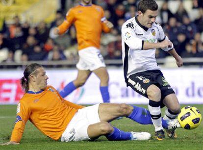 Horroroso en el centro de su defensa, el Valencia naufragó sin remedio en esta primera parte. Sin faro que lo alumbrara, Emery mandó calentar a Banega, Soldado y Joaquín. La metamorfosis fue completa. Banega le dio identidad al equipo y Soldado la confirmó en el primer remate del que dispuso. Tras un pase de Pablo y una recuperación de balón precisamente de Banega. Ever mejoró a todos lo que circulaban a su alrededor: a Pablo por la derecha, a Mata por la izquierda y a Costa por delante, beneficiándose a su vez los dos puntas, Soldado y Aduriz. Ahora sí, el Valencia atacó con todo y el Málaga le puso la alfombra cuando Rosario fue expulsado, según el acta, por "hacerle un corte de mangas" al juez de línea. En el córner siguiente marcó Banega: un disparo sencillo facilitado por una salida fallida de Asenjo, bloqueado por uno de sus defensas.