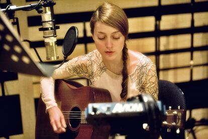 Lourdes, tocando en el estudio de grabación de Glasgow