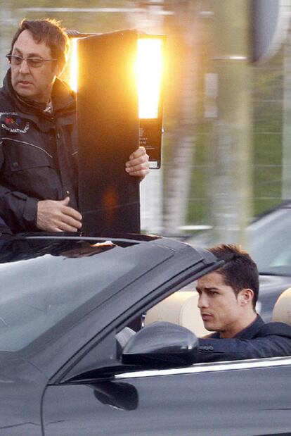 La estrella del Real Madrid rodó ayer un anuncio en la avenida del Ventisquero de la Condesa, en el barrio de Fuencarral de Madrid. La escena coincidió con la salida de varios colegios de la zona. Unos 300 escolares se agolparon en la acera para ver a su ídolo que esta vez promociona un champú.