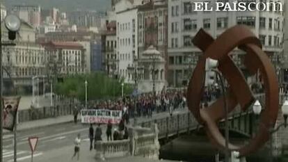 Cientos de personas respaldaron ayer en Bilbao la manifestación convocada por los partidos abertzales vascos y distintos colectivos sociales para denunciar la anulación de Bildu. Una medida que la coalición planteó como protesta pacífica contra la resolución judicial del Tribunal Supremo. También se realizaron concentraciones silenciosas en numerosas localidades de Euskadi. EA y Alternatiba, además, han convocado otra marcha reivindicativa para mañana, a las ocho de la tarde, con la que pretenden presionar al Tribunal Constitucional para que revoque la resolución y permita a Bildu concurrir a las elecciones del próximo día 22.