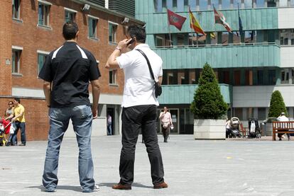 Dos escoltas esperan a sus protegidos frente al Ayuntamiento de Barakaldo