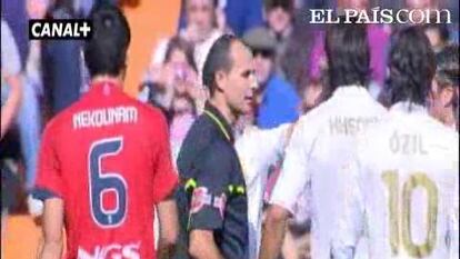 - Intermitente Özil. El mediapunta alemán da síntomas de tristeza. Dicen en el vestuario que le gustaría tener los mismos derechos exclusivos de que goza Cristiano. Dicen que se siente dotado para ser la principal figura del Madrid y que no le gusta hacer determinadas labores defensivas. El caso es que Özil, a falta del tratamiento que cree merecer, se muestra tímido, inhibido, hasta inseguro. Ayer desapareció del partido hasta el 3-1. Entonces participó de la gestación de tres goles. Antes del 4-1 dirigió el primer contragolpe del Madrid en el partido, trianguló con Higuaín y se anticipó a Satrústegui en el área, tocando el balón antes de ser derribado. La expulsión y el sucesivo penalti quebraron a Osasuna definitivamente.