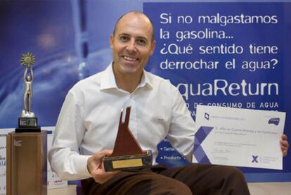 Alfonso Cuervo-Arango, que reside en Alicante, es el responsable de la empresa EID (Diseños industriales eficientes sus siglas en inglés) y en el año 2005 patentó Aquareturn. El aparato evita que se pierda agua caliente y permite ahorrar energía ya que "no deja que el agua del grifo salga hasta que esté a la temperatura deseada", explica. El artilugio se instala fácilmente y permite "aprovechar toda el agua y la energía", según explica el galardonado que cifra en un ahorro de unos 6.500 litros por persona y año lo que logra con este invento que se puede instalar en casas particulares, comercios o industrias. "No explico más detalles por cuestiones de confidencialidad", asegura este inventor ingenioso que empezó a estudiar ingeniería en la Politécnica de Barcelona, pero que tras cursar tres años en la universidad se fue a trabajar a la empresa privada. Ahora lleva más de diez años diseñando sistemas nuevos para hacer la vida más cómoda.